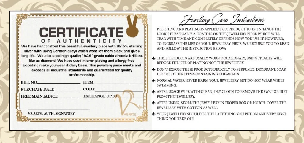 Polishing & Plating Is Generally Applied To A Product To Enhance The Look. It’s basically a Coating on the Jewellery Piece Which Will Tear with Time & Completely Depends How You Use It. Although Our Production Team Professionals Take Care Of Each And Every Jewellery Piece To Maintain High Standard Of Industry. However To Increase the Life of Your Jewellery, We Request You to Kindly Read and Follow the Below Mentioned Instructions & Tips to Ensure Long Life of Your Jewellery.